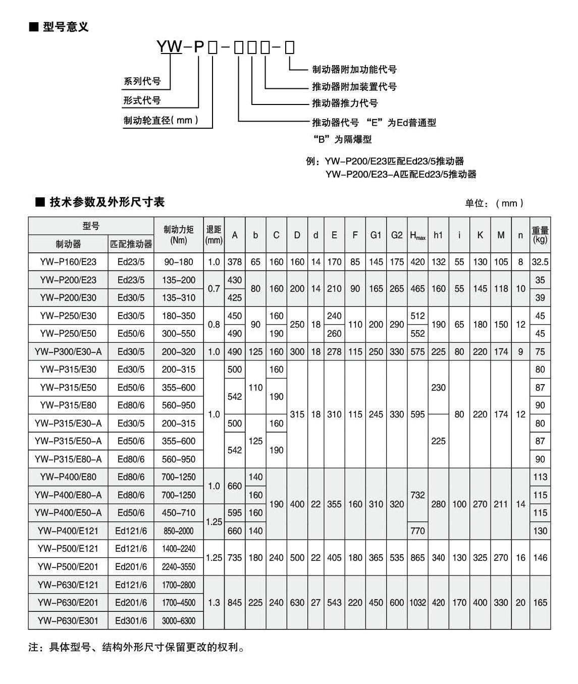 YWZ8.YWP系列電力液壓鼓式制動器的連接尺寸和制動力矩參數符合JB/ZQ4388-86和GB6333-86(帶A系列)標準,技術要求符合JB / T6406-2006標準,配套符合DIN15430標準的Ed系列推動器。